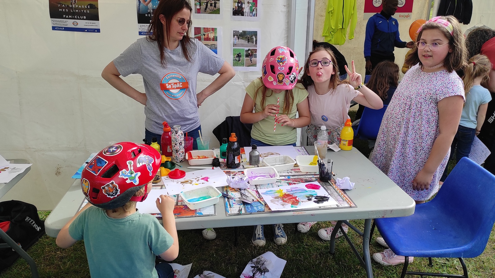 Nous avons participé à la semaine olympique organisée par la commune de Sotteville-lès-Rouen, et ce ne fut que du positif. Présent sur les villages olympiques Rostand (lundi) et Gadeau de Kerville (mercredi), nous avons proposé des ateliers sportifs avec la découverte de nombreuses épreuves athlétiques et des parcours avec Guillaume, mais aussi des ateliers artistiques, puisque les participants ont pu s'essayer à la peinture soufflée en compagnie de Sylvie et Céline. A chaque fois le même résultat : des sourires sur tous les visages, et pour beaucoup, l'envie d'en savoir plus sur notre association et son concept unique, voir de nous rejoindre pour la rentrée de septembre.