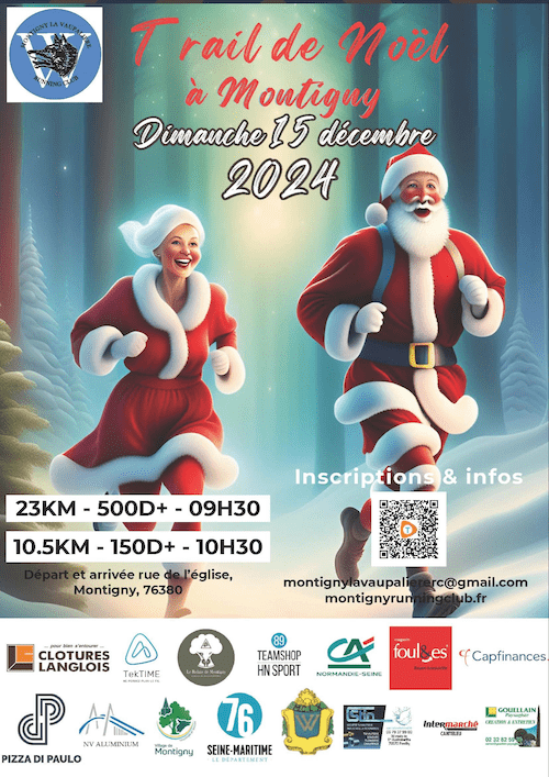 14ème édition du Trail de Noël organisé par le Montigny La Vaupalière Running Club le dimanche 15 décembre 2024.