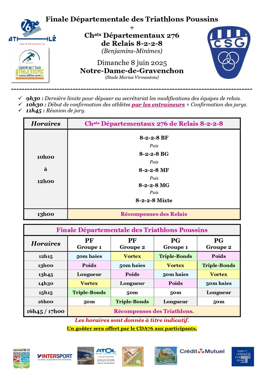 Résultats de la finale départementale des triathlons poussins