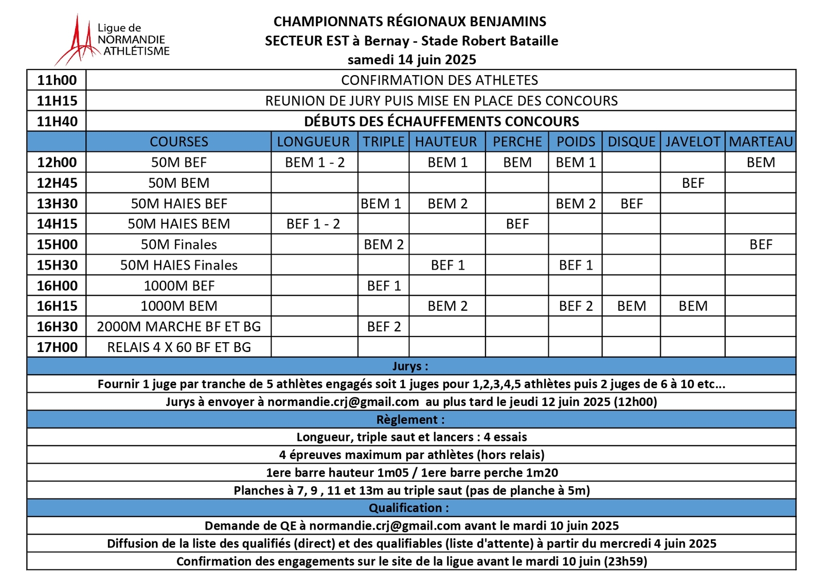 Championnats régiaunaux individuels benjamains de la zone Normandie Est.